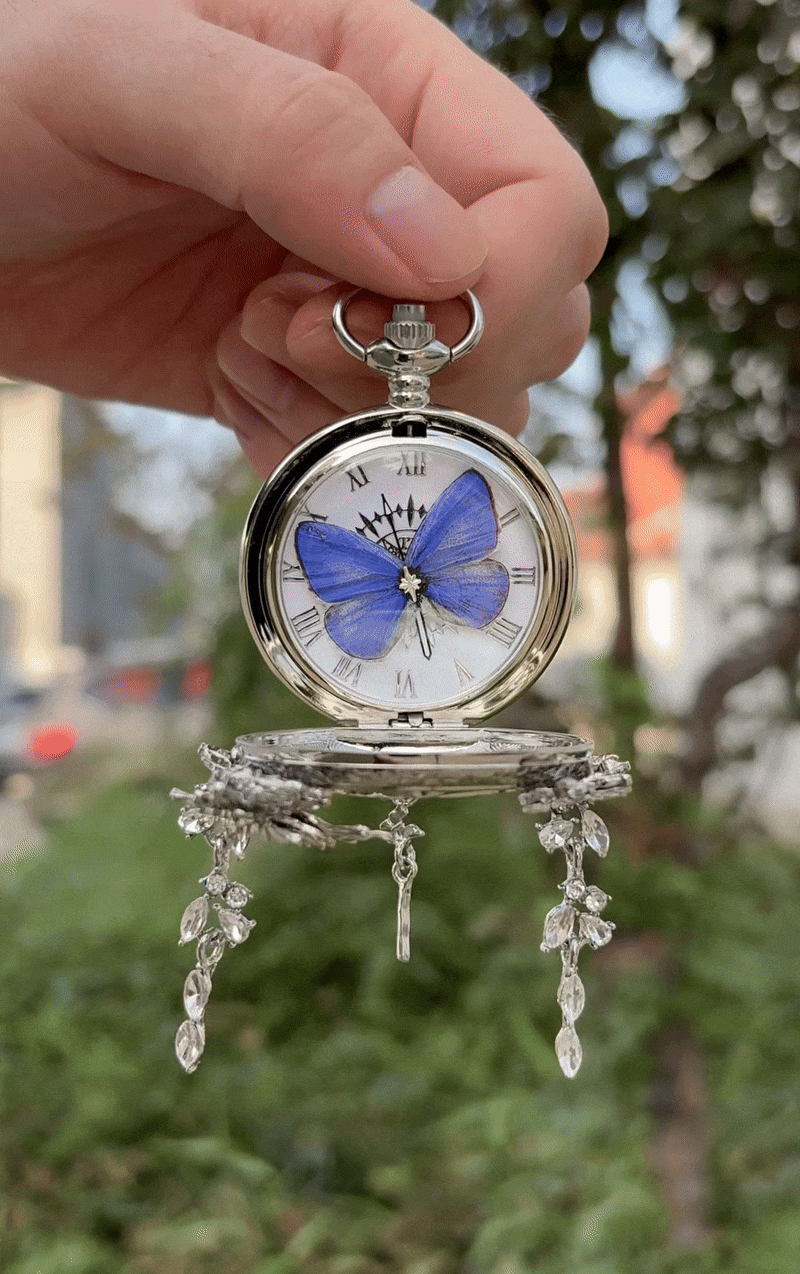 A butterfly pocket watch made for those who wear meaning as much as style — a piece that moves with you, captures your moments, and stays close to who you are.